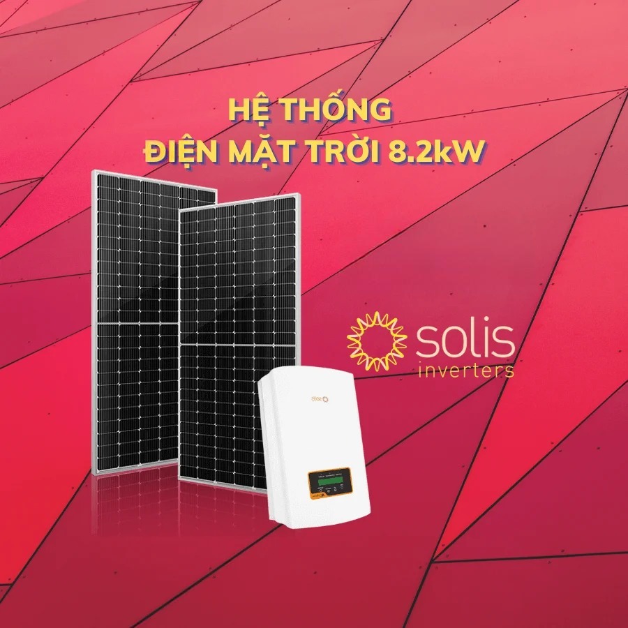 Diện tích lắp đặt khoảng 40m², hiệu suất chuyển đổi 20,4% - Inverter hòa lưới Solis 8kW: